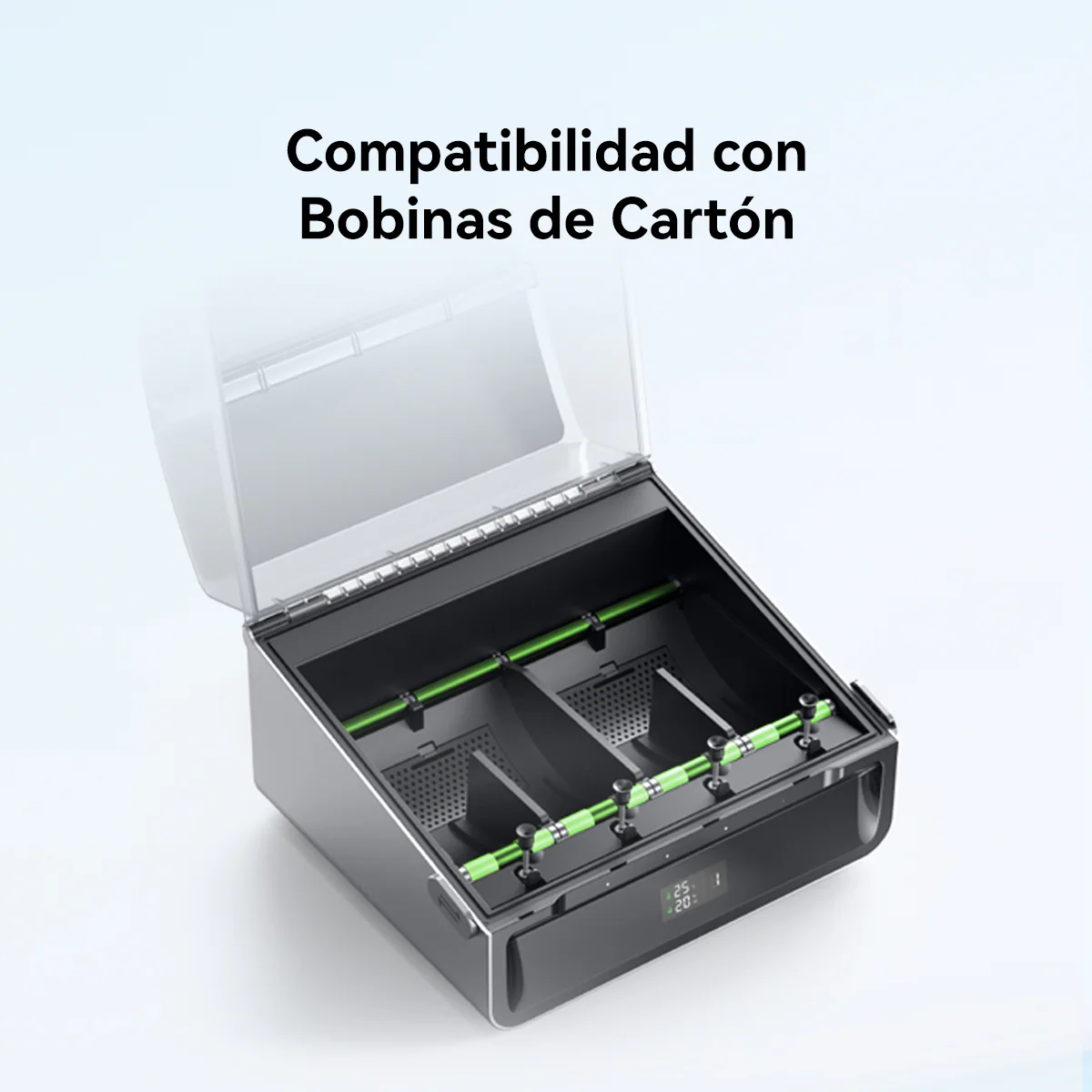 Mantiene el filamento en condiciones controladas, reduciendo fallos por humedad.